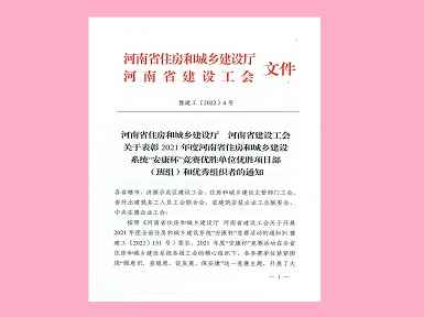万博官方网站-万博(中国)焊工班组荣获“2021年度河南省住房和城乡建设系统‘安康杯’竞赛优胜班组”称号