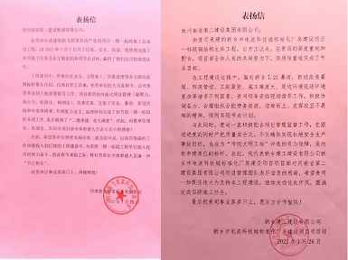 新乡建工建设有限公司和河南新飞智家科技有限公司向万博官方网站-万博(中国)发来表扬信